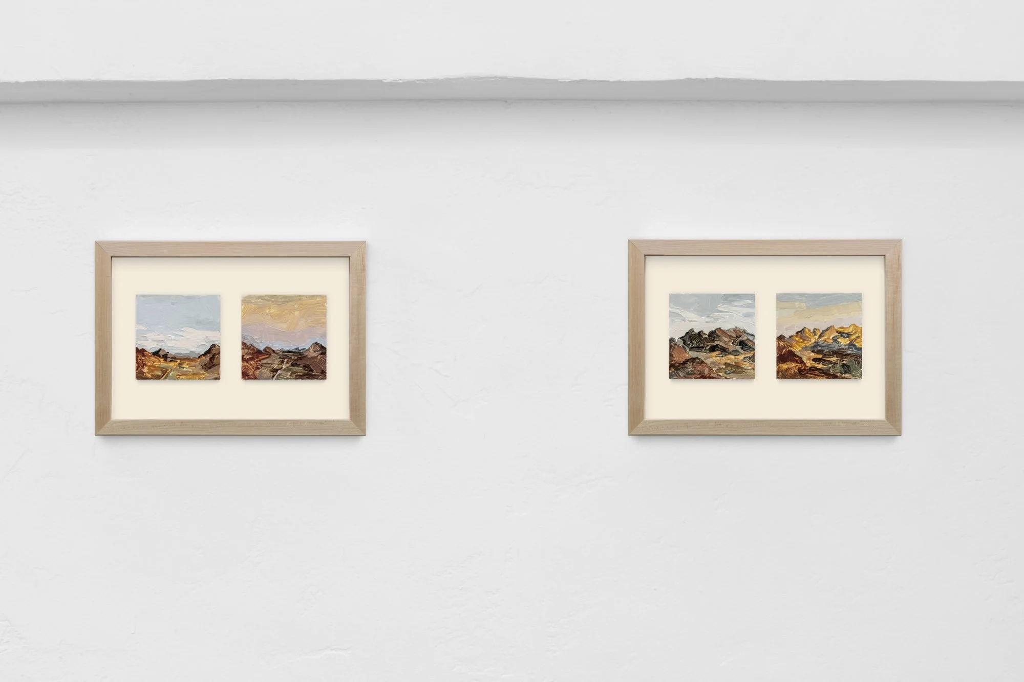 With the utilization of her own handmade pigments, a blurring between the painted image and the physicality of the terrain emerges. This process allows the illusion of representation to dissolve, transforming the artist into a conduit between nature and its depiction. Each painting, small in scale, becomes a memory—a provocation of emotion and awe—standing as a testament to the magnificence and fragility of the natural world.