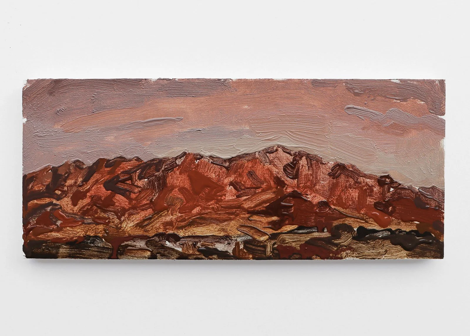 Mojave Mountains, 2025, handmade earth pigments and oil on panel, 5.5 x 13 inches
